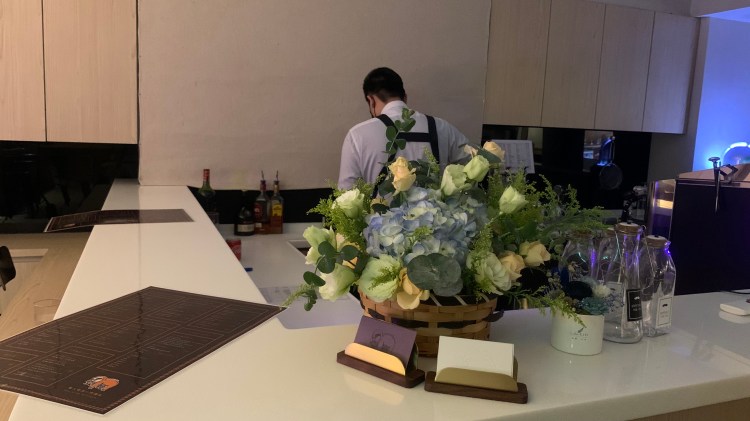 當天總共有4個人來上課,課程附一杯店裡做的飲料。上課的教室在店面的2樓,桌面上有圍裙以及剪刀,每個人有一桶花材、葉材,桌面上會有一些其它比較短的花也是可以使用的。想要看一些花材介紹可以參考這篇初學者的不專業10種花材葉材介紹+花藝小知識分享。