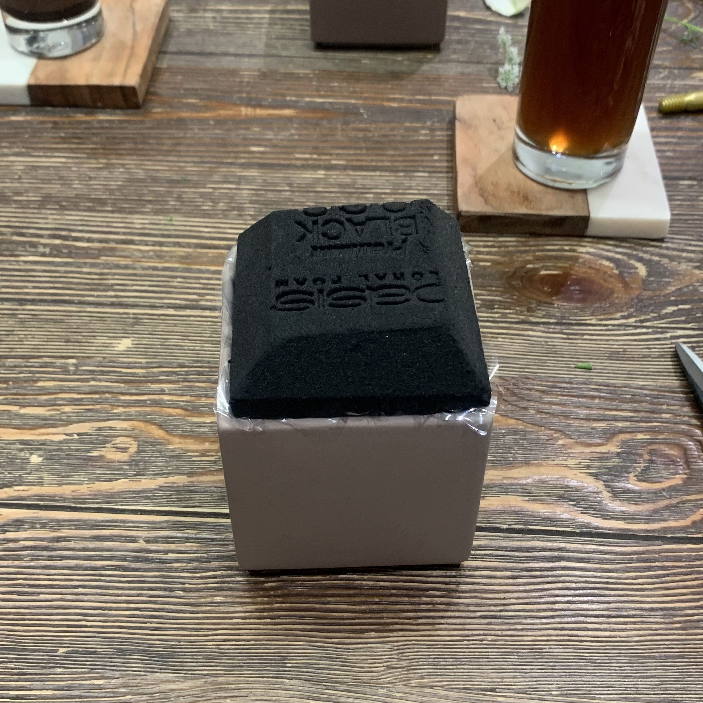 看完示範之後接下來就是自己插的時間,一開始桌上只有空空的海棉,按照老師剛剛教的思路,我們摸索著開始插花。