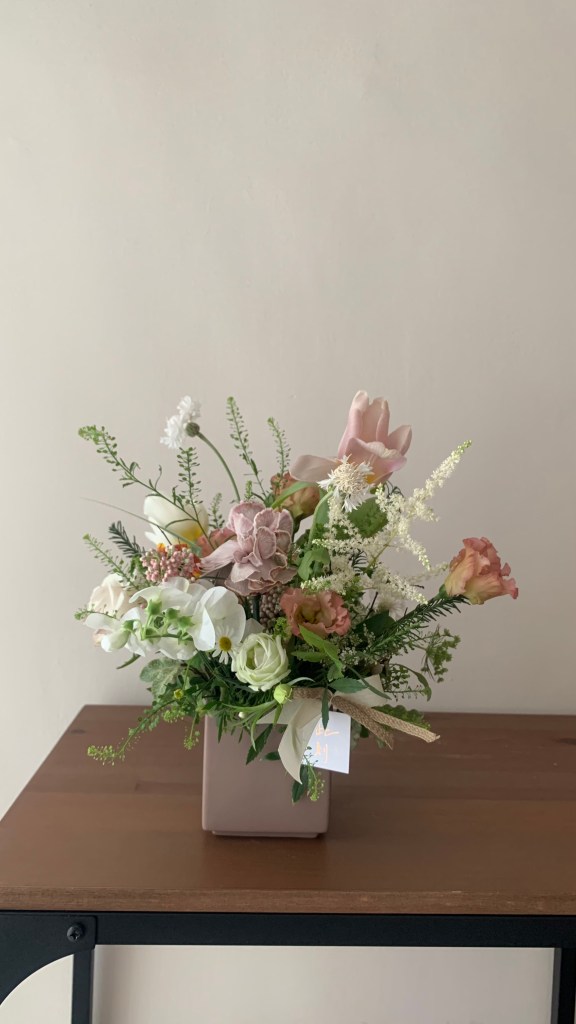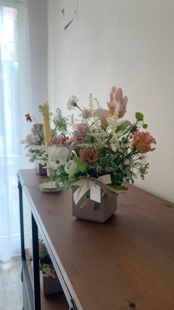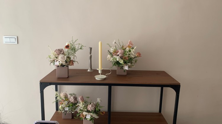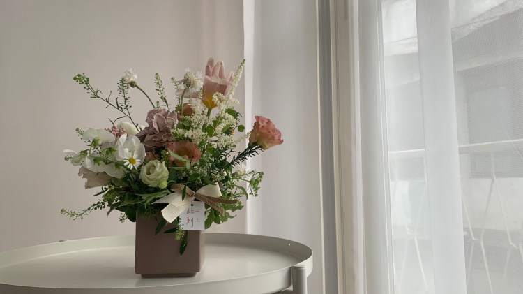 以前覺得鮮花就是一群遲早會枯萎的東西,都不知道拿到花要做什麼,某個時刻開始卻突然覺得好喜歡花,每一朵都那麼姿態萬千。現在喜歡鮮花勝於乾燥花、永生花,大概就是覺得凋謝也是一種美麗。報名了第一堂的韓式桌花課程感覺很開心,無奈我想上第二堂課的時候就因為疫情停課了,所以我只好上完一堂課就自己在家裡亂插,跟大家分享一下我的心得。