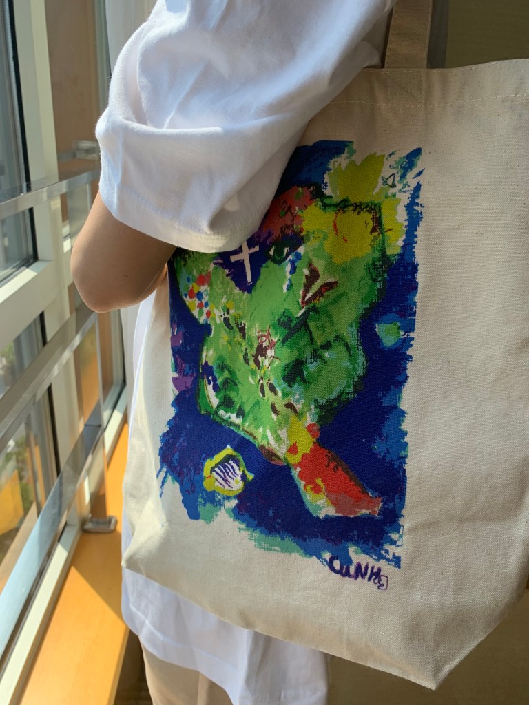 另一個袋子是米色帆布袋,質地比較厚,是我很喜歡的那種比較天然感的觸感,上面的圖是我自己畫的,之後想跟大家再分享這個圖上的故事,那是我心心念念的綠島,裝著我十年份的故事。我覺得在設計設些衣服袋子,總是能讓煩躁的心情變好,彷彿就是在把一團混亂的思緒整理清楚,最後再以喜歡的方式呈現出來,無論是留給自己念想,還是送給別人做紀念,都是獨一無二的記憶。之後等我論文寫差不多,我再好好整理MBA的點點滴滴,認真跟大家細細分享。