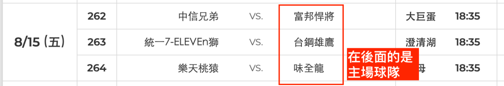 先知道這場比賽的「主場」是哪一個球隊,接下來可以參考下表了解哪些平台有轉播。味全龍、統一獅還有富邦悍將都有免費的LINE TODAY轉播比賽。