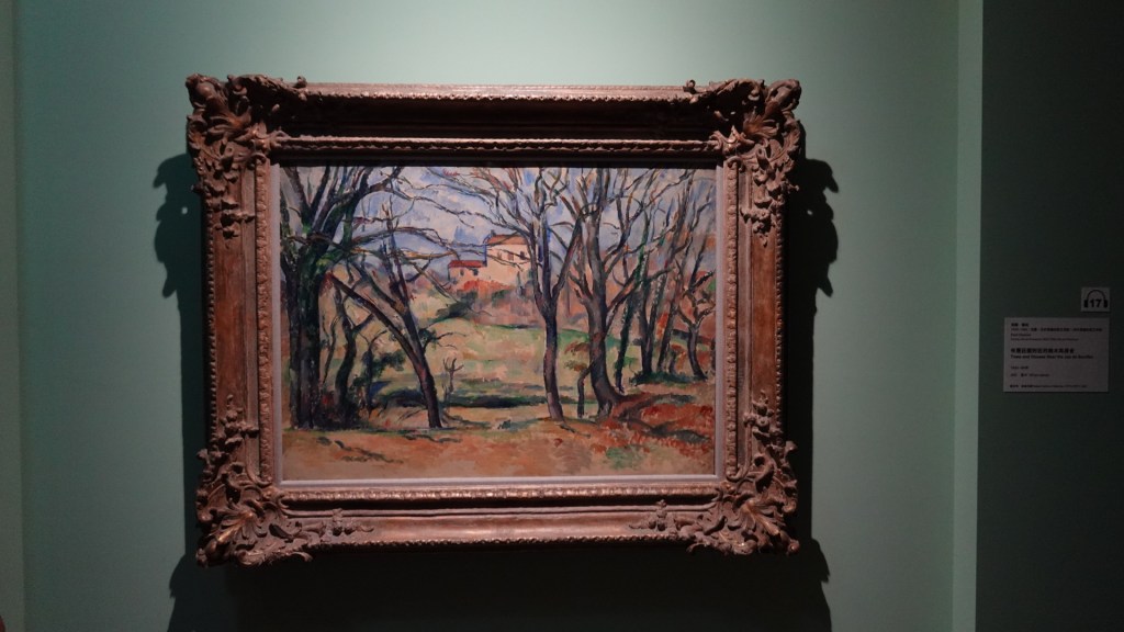 後印象派的畫家不滿足於捕捉光影色彩,更重視個人內在情感的表達。塞尚的父親買下布豐莊園,塞尚就在此創作許多作品,也以莊園為題材畫了多幅油畫。《布豐莊園附近的樹木與房舍》雖是寫生,卻是脫離印象派的作品。