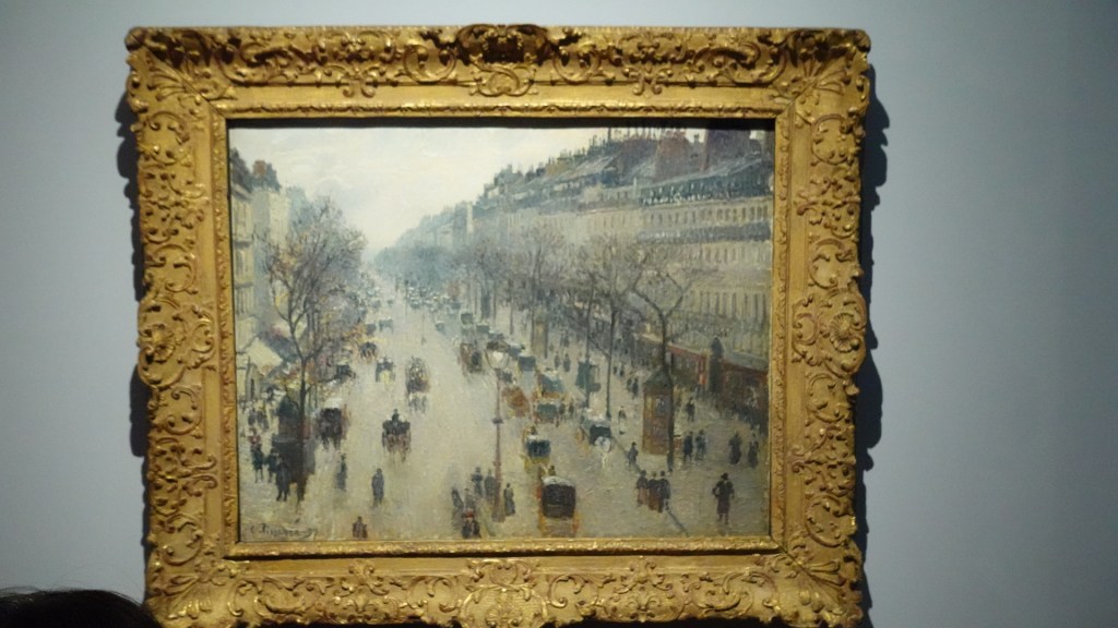 畢沙羅花了三個月在飯店內,畫出從清晨、午後、黃昏、夜晚等14幅不一樣的蒙馬特大道,有春天有枝枒、冬天的樹枝、黃昏的金黃色調還也夜晚路燈熠熠。如果有機會真想去看每一幅不同的作品,細細比較不一樣的氛圍。