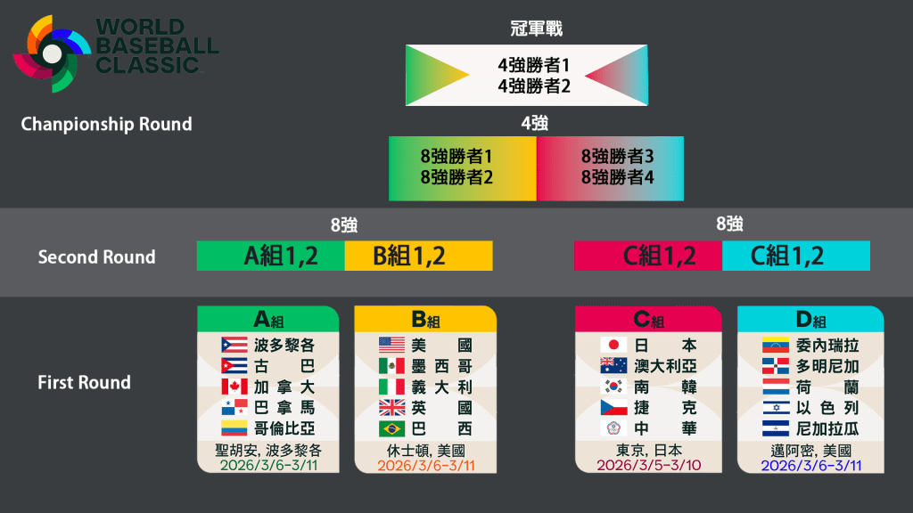 這次2026的WBC經典賽每四年舉行一次,前一年(2025)中華隊通過了資格賽。WBC的特點是,大聯盟的選手可以參賽,因此會是最多世界好手齊聚一堂的經典賽事。